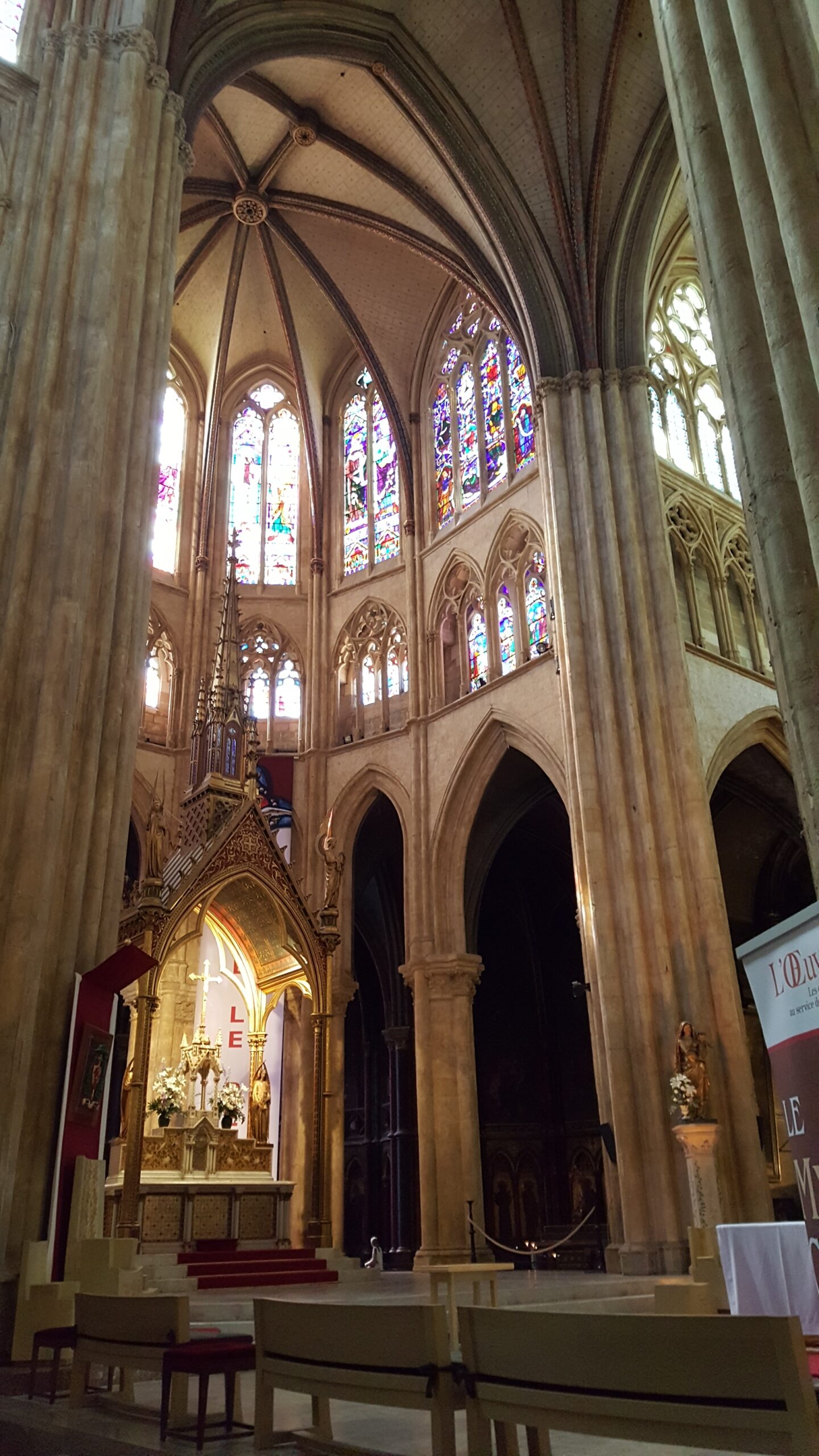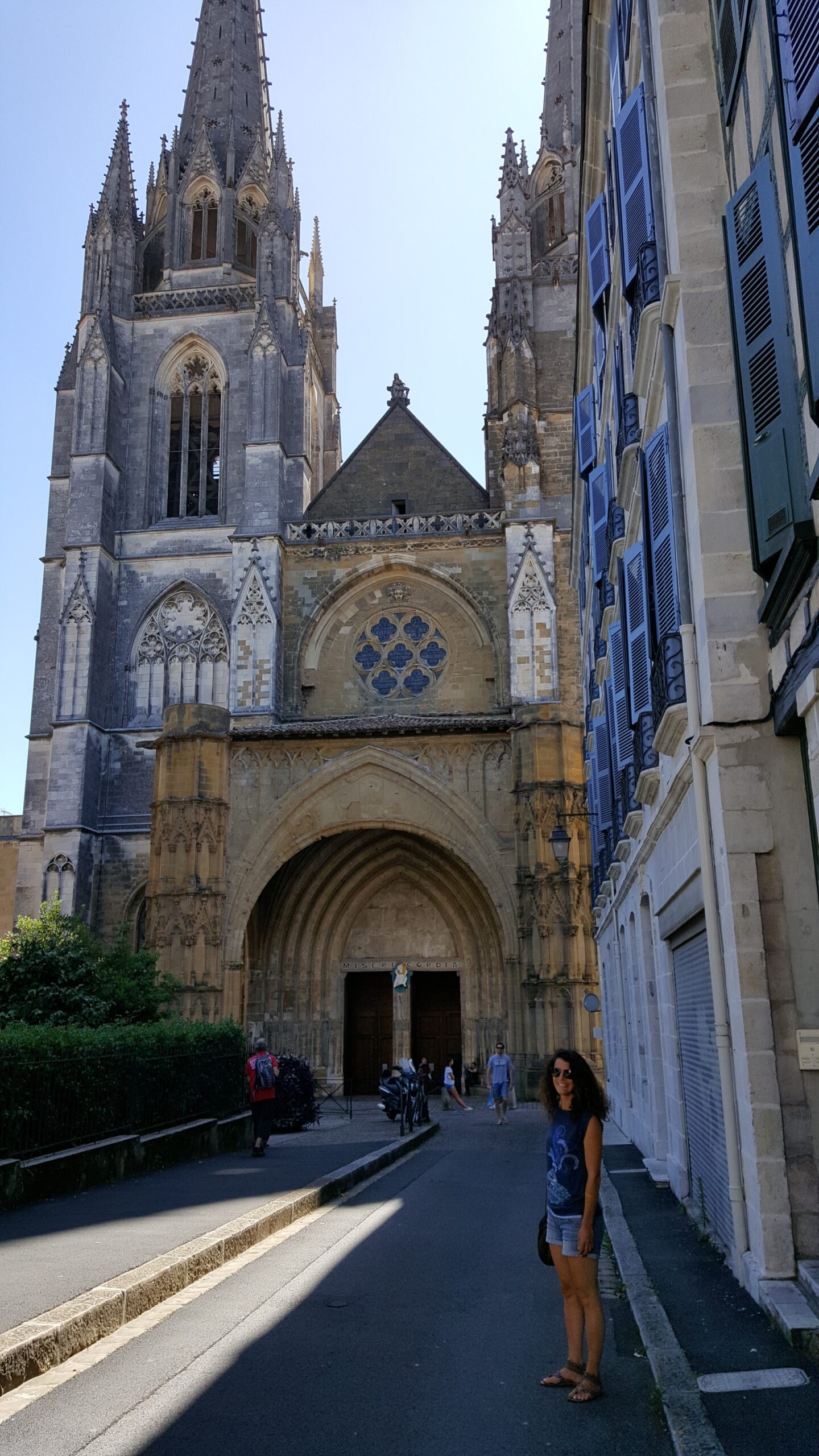 Người ta vẫn nói có duyên thì sẽ gặp. Thật may mắn vì tôi được cô bạn người Pháp mời tới thăm và sống hai ngày ở thị trấn yêu thích của cô ấy- Bayonne- tại căn hộ mà cô sống cùng bạn trai. Đó là một căn hộ tầng áp mái của một khu nhà 5 tầng đậm chất kiến trúc địa phương, nằm ngay trung tâm gần nhà thờ Saint- Andre. Đây là công trình mang phong cách Gothic truyền thống. Vẫn là lối kiến trúc tôn giáo quen thuộc Châu Âu, không gian giữa của nhà thờ là dàn hợp xướng nắm phía dưới dàn mái kính lộng lẫy, bao quanh là những bức tranh tường, tranh kính phong cách phục hưng đầy tinh tế, các thức cột, tường, trần… với tỷ lệ hoàn hảo. Phía không gian bên trong là sân giữa của nhà thờ, nơi thường xuyên diễn ra các hội chợ, triển lãm cho người dân bán các sản phẩm thủ công vào những dịp cuối tuần.