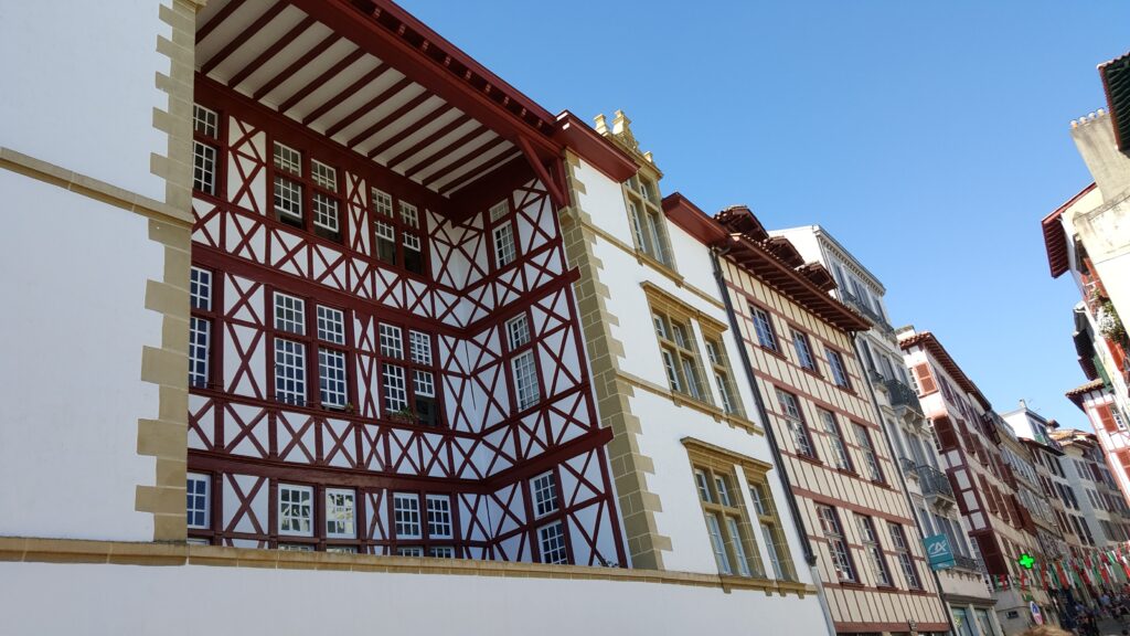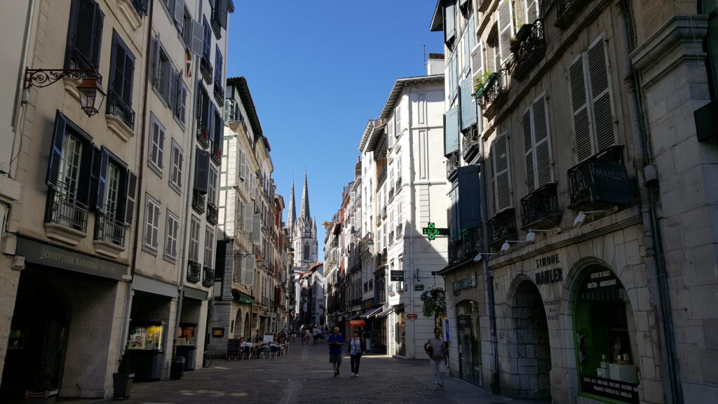 Lại thêm những cảm nhận mới cho những nơi mà tôi đi qua. Đây là một thị trấn nhỏ xinh đậm tính truyền thống bên con sông Nive hiền hòa. Cả khu phố cổ/ancient nằm gọn trong vòng thành cổ/ citadel. Sự truyền thống đã được bắt đầu ngay từ cái nhìn đầu tiên. Bước chân tới thị trấn thì đầu tiên là khu ancient hiện ra với những con phố nhỏ xinh đẹp bên trong những bức tường thành đá có niên đại cổ xưa, kéo dài mãi dẫn dắt tầm nhìn thăm ngắm của du khách một cách đầy thú vị. Thị trấn Bayonne chia làm hai phần, Grand Bayonne với các hàng quán và nhà thờ của thị trấn, và Petit Bayonne tràn đầy sự trẻ trung, quyến rũ nằm bên bờ phải của sông Nive. Về cơ bản, Bayonne hiền hòa và giữ được nét truyền thống nguyên vẹn. Kiến trúc công trình mang phong cách xứ Basque đặc trưng. Các chi tiết gỗ mầu sắc khác nhau theo dạng mắt cáo ở mặt tiền, vừa là trang trí vừa là một phần lộ kết cấu gỗ chịu lực chống đỡ toàn bộ cho ngôi nhà. Nhờ thế, các ngôi nhà dù có hình thức rất đồng điệu mà vẫn sinh động với nhiều màu sắc khác biệt, đó cũng chính là điểm nhấn trang trí nhà ở đô thị rất đặc trưng cho toàn khu vực xứ Basque này.