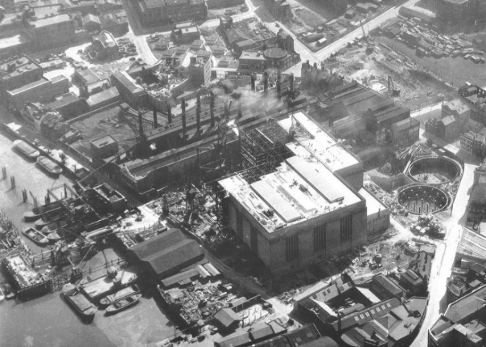 Hình 2a: Bankside và môi trường xung quanh, tháng 1 năm 1947 Hình 2b: Nhà máy điện Bankside đang được xây dựng, tháng 3 năm 1952