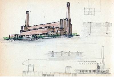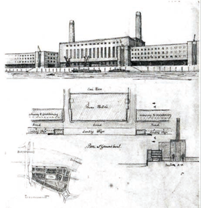 Hình 5b: Thiết kế ban đầu của nhà máy điện Bankside, năm 1945.