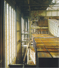 Nhà nồi hơi cao dành cho nồi hơi đốt than, nhưng việc sử dụng dầu cho phép xây dựng một công trình thấp hơn. Lưu ý, thiết kế ban đầu với hai ống khói.