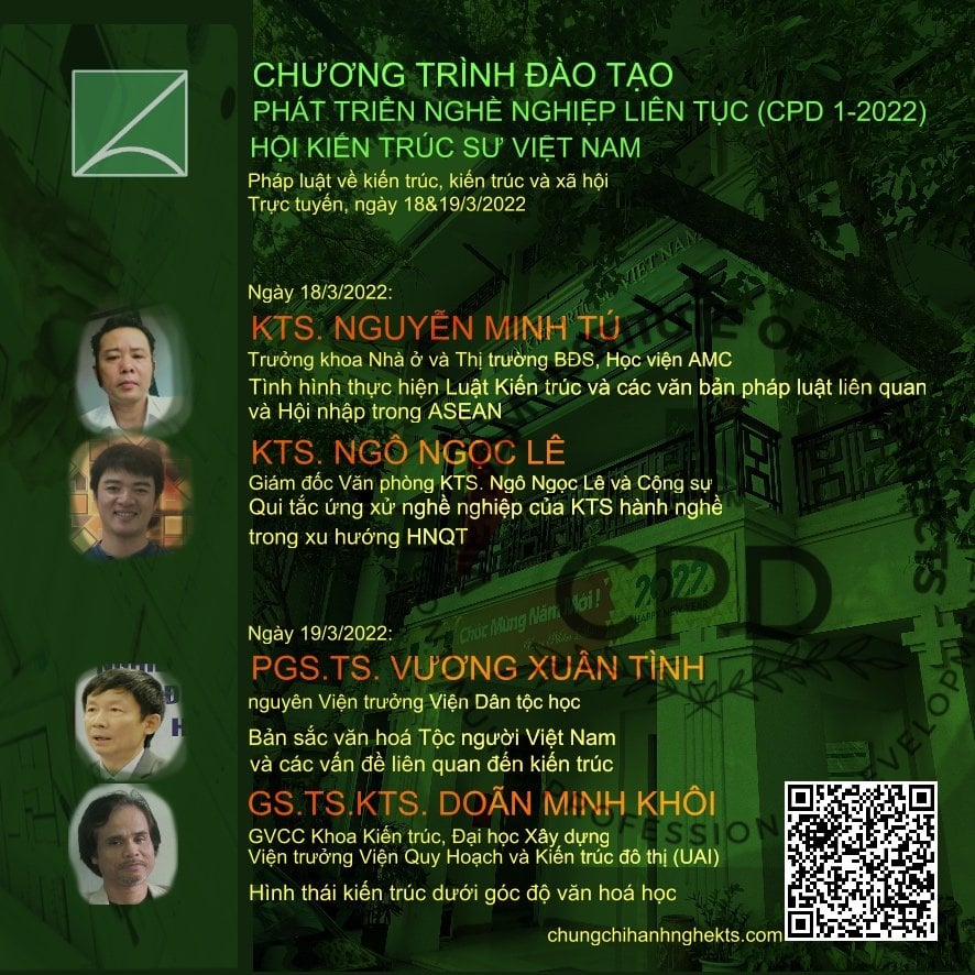 THÔNG BÁO TỔ CHỨC CHƯƠNG TRÌNH PHÁT TRIỂN NGHỀ NGHIỆP LIÊN TỤC (CPD 4-2022) DÀNH CHO KTS HÀNH NGHỀ