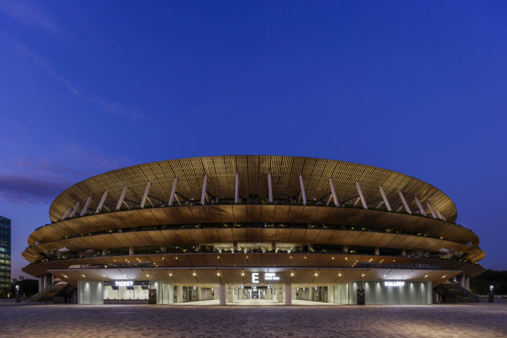 Ngày 20/9/2022, Hội KTSVN hân hạnh tiếp đón GS.KTS Kengo Kuma và phu nhân Satoko Shinohara – Chủ tịch Trường Đại học Nữ sinh Nhật Bản. Chủ tịch Hội KTSVN Phan Đăng Sơn đã bày tỏ sự ngưỡng mộ của giới KTS Việt Nam đối với sự nghiệp và các công trình đầy tính nhân văn của GS.KTS Kengo Kuma, đặc biệt là Sân vận động quốc gia Nhật Bản phục vụ Thế vận hội Olympic và Paralympic 2020. Sân vận động này được xây dựng thay cho công trình do Zaha Hadid Architects thiết kế. Mặc dù Hadid đã giành chiến thắng trong cuộc thi quốc tế năm 2012 nhưng Chính phủ Nhật Bản phải quyết định từ bỏ thiết kế này vào năm 2015 do lo ngại về chi phí khổng lồ 3 tỷ USD và sự phản đối của các kiến trúc sư Nhật Bản. Cuối cùng, văn phòng kiến trúc của Kengo Kuma đã hợp tác với công ty xây dựng Taisei Corporation và công ty Azusa Sekkei để thiết kế và hoàn thành xây dựng sân vận động này năm 2019 với chi phí 1,25 tỷ USD. Mặt tiền của sân vận động bao gồm các mái hiên nhiều lớp, xếp chồng lên nhau được truyền cảm hứng từ kiến trúc gỗ truyền thống Nhật Bản. Mặt dưới của các mái hiên bao phủ bằng các thanh gỗ từ 47 tỉnh thành trên toàn Nhật Bản, mang lại cho sân vận động sự khác biệt lớn và giá trị thẩm mỹ theo phong cách rất Kengo Kuma. Công trình này hội tụ cả yếu tố thực tế và phong cách kết hợp giữa công nghệ tiên tiến và thẩm mỹ thiết kế. Quan trọng nhất là Kuma đã giải quyết vấn đề về sức nóng mùa hè ở Tokyo bằng cách tạo ra cấu trúc mái hiên nhiều lớp được thiết kế để “hút” gió và chuyển hướng gió lan tỏa khắp sân vận động nhằm kiểm soát nhiệt độ và độ ẩm cho khán giả và các vận động viên. Ở các tầng có bố trí thảm thực vật dọc theo các hành lang và thiết kế này đã được chào đón rộng rãi vì đã sử dụng cây xanh một cách thông minh.