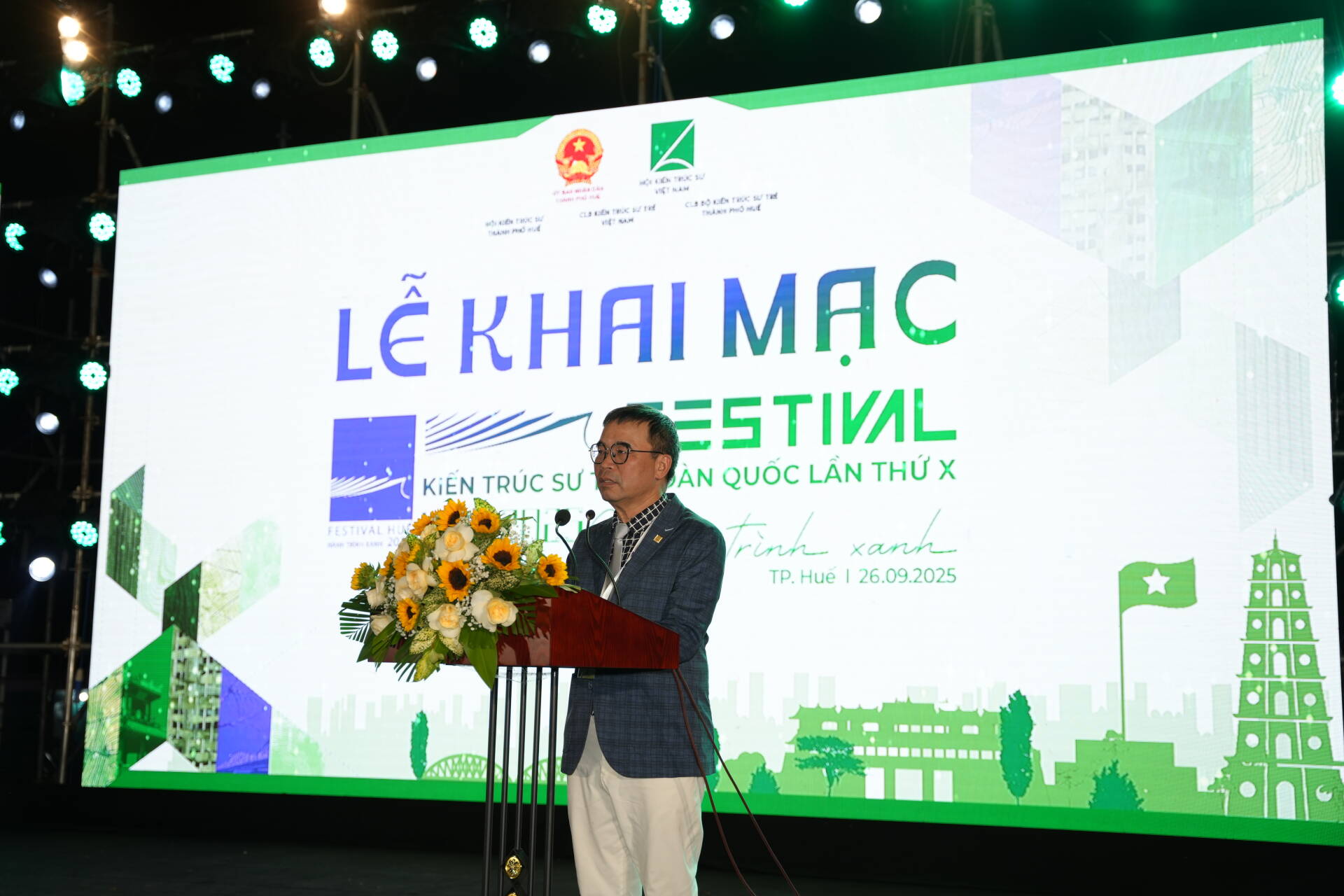 Festival Kiến trúc sư trẻ toàn quốc lần thứ X – Huế 2025 với chủ đề “Hành trình Xanh”: Ngày hội sáng tạo và kết nối của hơn 1.000 kiến trúc sư trẻ cả nước đã chính thức được khai mạc vào tối 26/09/2025, tại Huế Times Square. Sự kiện diễn ra từ ngày 26 đến 28/9/2025 dưới sự chỉ đạo của Hội Kiến trúc sư Việt Nam, UBND Thành phố Huế, do CLB Kiến trúc sư Trẻ Việt Nam, Hội KTS Thành phố Huế và CLB KTS Trẻ Thành phố Huế phối hợp tổ chức.