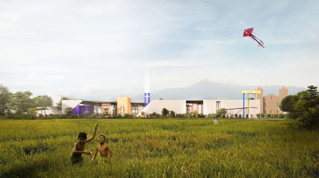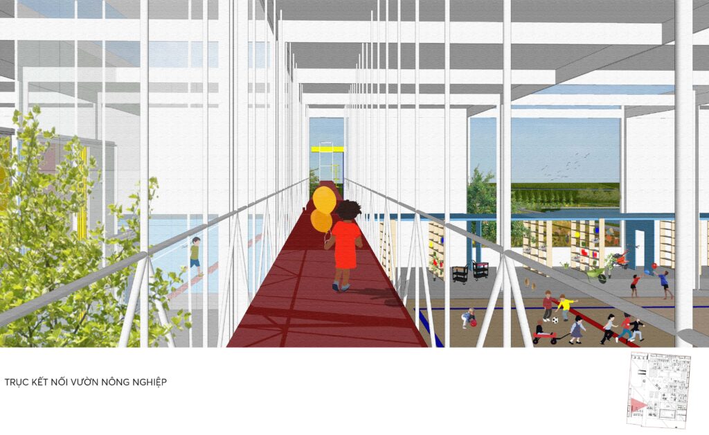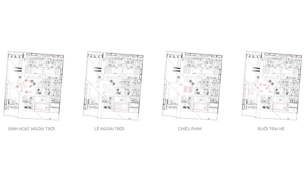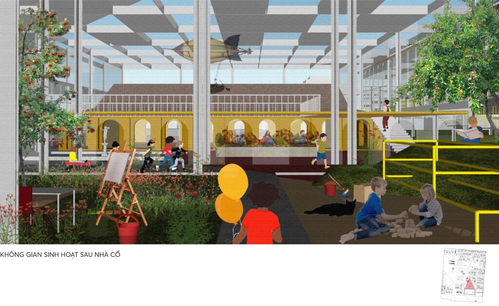 Một điểm cộng nữa của đồ án là ngoài giải pháp tổ chức không gian nội bộ rất tốt, kết nối các công năng ở, sinh hoạt xã hội, học tập chặt chẽ và hợp lý thì tác giả đã có sự quan tâm cần thiết đến yếu tố hài hòa và hòa nhập với ngoại cảnh khi công trình được xây dựng lên. Ý tưởng đề xuất tạo dựng một trục không gian ký ức của công trình nối 3 điểm: cổng làng cũ , nhà cổ (1914) và nhà thờ chính tòa Bùi Chu không những đã tạo dựng cho công trình một tuyến không gian công cộng rất đặc biệt có tính kết nối dẫn hướng mà còn rất phù hợp với các hoạt động chung ngoài trời cần có của cộng đoàn đặc biệt này.