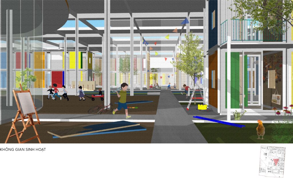 Sinh viên đã thành công khi tạo dựng nên một mô hình nhà ở cộng đồng mới có tính tổng hòa, trộn lẫn mô hình của một nhà trẻ S.O.S, mô hình cô nhi viện nhưng lại có bóng dáng của mô hình một gia đình bình thường và tác giả đang tự đặt tên riêng cho mô hình này là Nhà Dục Anh.